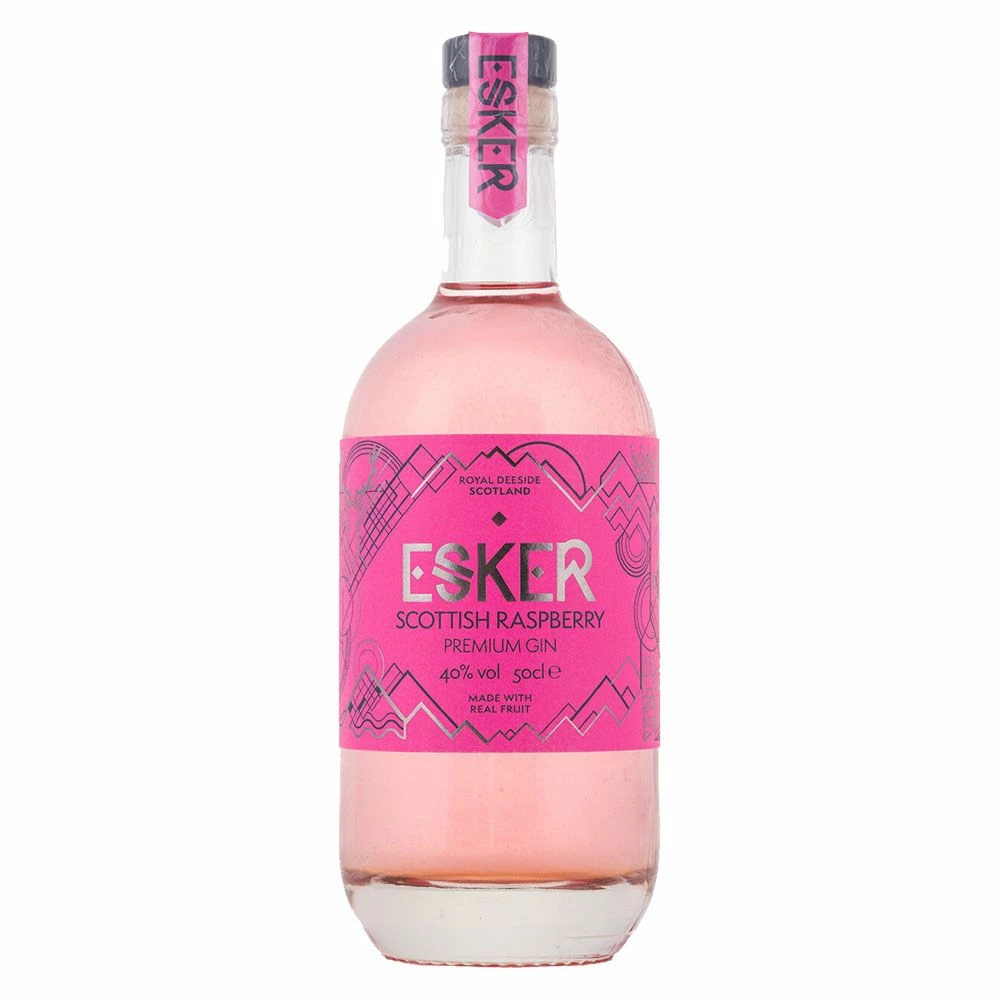 Der Esker Scottish Raspberry Gin ist ein fruchtiger, rosafarbener Gin. Er wird mit süßen und saftigen schottischen Himbeeren aromatisiert.