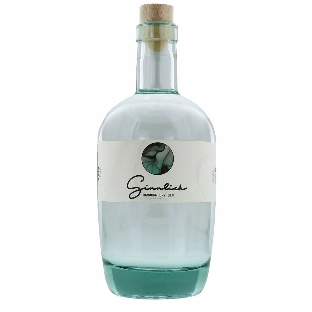 Beim Ginnlich Hamburg Dry Gin trifft mediterrane Sinnlichkeit auf hanseatische Raffinesse. Mediterrane Botanicals und die von der Farbe des Mittelmeeres inspirierte türkise Flasche bringen das perfekte Urlaubsgefühl überall hin.